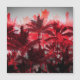 Schönes Kamindesign, eine Collage von hellen und tiefen roten Palmen in tropischer Sommerhitze, mit einem grauen Himmel.