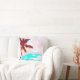 Entwurf von Palmen auf einer tropischen Insel mit einem aquamarinisch blauen Himmel und flauschigen weißen Wolken. Ferien Sommervibes für ein kühles, entspanntes Gefühl.