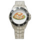 Dieses Design ist ein Teller voller köstlich aussehender Pfannkuchen. Auf dem Teller befinden sich drei Pfannkuchen mit Ahornsirup, der über sie läuft, und ein bisschen Butter, das oben schmilzt. Sie sehen so köstlich aus. Dieses Pfannkuchendesign sieht auf dieser Uhr großartig aus. Perfekt für sich selbst oder als Geschenk
