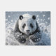 Ein Panda schleicht sich spielerisch durch eine verschneite Landschaft und schafft damit eine Schneeflut.