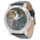 Uhr, Vintage Männeruhr mit schwarzem Lederarmband