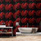 Un papel mural dramático, con rosas rojas, que dará carácter a tus espacios. Creado con mucho cariño para ti a partir de mi cuadro Rojo y Negro.