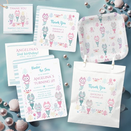 Nautical Themed Geburtstagskuppeln Dekoriert mit Niedlichen Meerjungkätzchen.