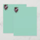 Rédigez vos messages avec élégance sur ce papier à lettres raffiné. Le design met en valeur un bouquet de roses bordeaux et de pensées lilas placé avec soin dans le coin supérieur, sur un fond vert pâle apaisant. Parfait pour vos correspondances personnelles, remerciements ou invitations.