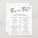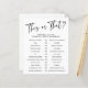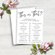 PAPIEREN Sie dieses oder jenes, das das Brautparty-Spiel kennt. Fügen Sie Ihrem Brautparty eine Touch Spaß und Spannung hinzu mit diesem "Who Knowdes the Bride Best"-Spiel! Testen Sie die Kenntnisse Ihrer Gäste über die zukünftige Braut mit 12 ansprechenden "this or that" Fragen, die alles von Hochzeitsvorlieben bis hin zu Honeymoon-Träumen abdecken. Ideal für lebendige Ansammlungen und für bleibende Erinnerungen! Vollständig anpassbar - Sie können jede der Fragen zum Anzug Ihrer Veranstaltung ändern! Bitte kontaktieren Sie uns unter cedarandstring@gmail.com , wenn Sie Hilfe beim Design oder den passenden Produkten benötigen. 🌟 Wenn Sie eine sofortige Download-Version (Druck auf Zuhause) dieser Auflistung suchen, gehen Sie bitte hier: https://www.zazzle.com/this_or_that_who_knows_the_bridal_shower_game_invitation-256401720375548604