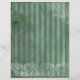 Älteres, grün gestreiftes Papier mit weißen Spitzenteilen und Pfauenfeder. Diese vielseitigen Arbeiten eignen sich ideal für Scrapbook-Hintergründe, Kunstzeitschriften, Foto-Alben und Collagen. Für beste Ergebnisse wählen Sie ein mattes, texturiertes Papier.
