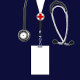 Teller der Creative Medical School mit Spitzhirten, Stethoskop und Schweizerischen Armeemesser. So personalisieren Sie Text bearbeiten, um den Namen des Arztes hinzuzufügen.