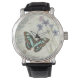 Uhr, Vintage Männeruhr mit schwarzem Lederarmband