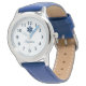 Kinderuhr aus Edelstahl mit blauem Lederarmband