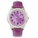 Uhr, Kinderuhr aus Edelstahluhr mit lila Lederarmband