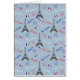 Nahtlose Pariser Textsanleitung mit Eiffelturm, dreifarbigen Herzformen und französischer Flaggendekoration auf blauem Hintergrund zum Valentinstag