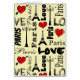 Pariser Textgestaltung für den Valentinstag mit roten Herzformen, Eiffelturm und Straßenlampen, die auf gelbem Hintergrund dekoriert sind