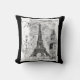 Eine Schwarz-Weiß-Collage von Paris Sehenswürdigkeiten mit dem Eiffelturm, dem Arc de triomphe, einer Straßenlampe und einem Kiosk. Liebhaber von Paris erhalten ein schönes Geschenk.