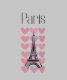 Niedlicher Pariser Eiffelturm mit Herzen im Hintergrund.