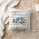 Ein großes Vintages Fahrrad, das in einem Spray der blauen Vergissmeinnichte mit dem Eiffel-Turm im Hintergrund und in einer handgeschriebenen Paris-Adresse drapiert werden und Poststempel von einem alten französischen Buchstaben sind Set gegen Text von Victor Hugo "Notre Dame DU Paris,", zum dieses reizenden grafischen Kissens herzustellen.