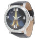 Uhr, Vintage Männeruhr mit schwarzem Lederarmband