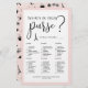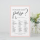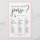 Das schicke Brautparty "What's in your purse" passt zu unserer Pariser Romance-Brautparty-Kollektion und zeichnet sich durch eine skurrile schwarze Schriftzeichen und weiche rot-rosa Ränder mit einer winzigen Eiffelturm-Silhouette aus. Persönlich mit dem Namen und dem Duschdatum der Braut. Spielkarten kehren zu unserem Pariser Romantik-Muster zurück.