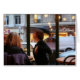Candid Fotografie - Pariser Mädchen in Bewegung in Café, Rue Rambuteau bei Beaubourg, Passant mit Regenschirm in der Straße auf der anderen Seite des Glases - 2008. Grußkarte.