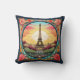 Der helle Pariser Sonnenuntergang Eiffelturm Paris Französisch-Frankreich Blumenkissenpolster mit einem Pariser Sonnenuntergang im Art Deko-Stil mit dem Eiffelturm in einem kühlen Blumenrahmen. Erstellt von Evco Studio www.zazzle.com/store/evcostudio