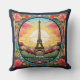 Bright Parisian Sunset Eiffel Tower Paris French France Floral Throw Pillow Cushion features an art deco style Paris sunset with the Eiffel Tower in a bold floral frame. Created by Evco Studio www.zazzle.com/store/evcostudio