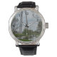 Uhr, Vintage Männeruhr mit schwarzem Lederarmband