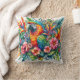 Das Kopfkissen des Kopfkissens zeigt ein lebendiges Wildtierportrait in Aquarellfarbe eines mehrfarbigen Papagei, der von einer Vielzahl von Blume gerahmt ist. Rot, Gelb, Orange, Grün, Blau und Rosa bilden ein Aussehen in diesem vielfarbigen Blumenpapagei.