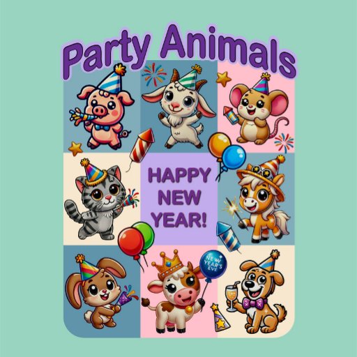 Feiern Sie das neue Jahr stilvoll mit unserer Party Animals Kollektion! Dieses spielerische und festliche Design umfasst acht bezaubernde Tiere - jedes einzelne feiert auf seine ganz eigene Art und Weise. Das Design ist in einem lebendigen Rechteck gerahmt, das in neun pastellfarbene Paneele unterteilt ist, wo Sie ein charmantes Schwein, Ziege, Maus, Katze, Pferd, Kaninchen, Kuh und Hund finden, das alle im neuen Jahr zum Klingeln bereit ist. Das Center Panel verkündet stolz Happy New Year! in kühlem, fröhlichem Schriftsatz, umgeben von lustigen Details wie funkelnden Sternen, farbenfrohen Ballons und glänzenden Feuerwerken. Egal, ob Sie es tragen, Ihren Raum dekorieren oder jemandem etwas Besonderes schenken, unsere Party Animals Linie erweckt die Freude und Spannung der Saison mit einer skurrilen Touch. Dieses Design ist perfekt für Tierliebhaber und diejenigen, die gerne feiern, und wird Ihren Neujahrsfestlichkeiten einen ganz besonderen Glanz verleihen. Machen Sie sich mit der niedlichen Crew der Stadt zum Party bereit!