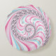 Dieses wunderschöne runde Kissen mit abstraktem, spiralförmig anmutendem Fraktal-Bonbons in Pastellblau, Rosa und Weiß.