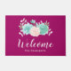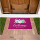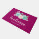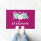 Eine Begrüßungsmatte auf magentafarbenem Hintergrund. Hübsche pastellfarbene Blume Bouquet. Die Blume, Blätter und Krabben sind pastellrosa und grün. Erstellt mit Aquarellfarbe und digitalisiert. Frisch und sommerlich.