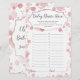 Diese Babydusche-Spielkarte verfügt über einen modernen Script-Schriftart auf dem Hintergrund der schwarzen Rosa und der Rose mit goldenen Punkten, perfekt für ein kleines Mädchen!