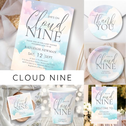 Pastel She's on Cloud Nine Baby Shower Einladung