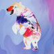 Pastel Arctic Explorer in Wasserfarbe. Ein wunderschönes und fantasievolles Eisbärendesign, das Abenteuer, Kreativität und sanfte, traumhafte Blues-Farben vereint, lila und rosa für ein magisches Kinderzimmer.