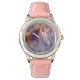 Kinderuhr aus Edelstahl mit rosa Lederarmband
