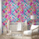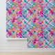 Ein nahtloses Muster mit karierten Pastellfarben und rosa Blume. Das Muster verbindet sanfte, sanfte Farbtöne mit zauberhaften Blumenelementen und schafft so einen reizvollen und optisch ansprechenden Effekt.