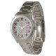 Diese Frauenuhr hat ein modernes Design von weißen "deformierten" Kreise, verbunden mit schwarzen Linien auf einem Feld von hellgrünen, blassrosa, blassblauen und blassgelben Streifen. Wenn Ihnen das Design gefällt, aber andere Farben bevorzugen, dann schreiben Sie mir.