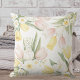 Das Kopfkissen ist in pastellfarbenen Blume im Aquarellstil gehalten, darunter Tulpen, Daffodien, Gänseblüten und andere zarte Blüten in Rosa, Gelb, Weiß und Grün. Die Blumenelemente sind in einem fließenden, Bio Muster auf weißem oder cremefarbenem Hintergrund angeordnet, wodurch eine frische, elegante, federnd inspiriert Ästhetik entsteht. Das Gesamtbild ist hell, luftig und perfekt für Zuhause-Dekoration mit einem sanften, botanischen Thema.