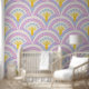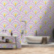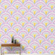 Pastellfarbene Muschel-Muster, die in Blumen und Formen geflickt wird