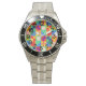 Diese Herren-Uhr hat ein Bauhaus-Design von Quadraten mit seltsamen Formen innen, wiederholt über das Design.
