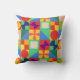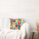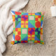 Dieses Kissen hat ein Bauhaus-Design von Quadraten mit seltsamen Formen innen, wiederholt über das Design.