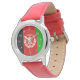 Kinderuhr aus Edelstahl mit rotem Lederarmband