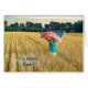 Junge Mädchen, die auf einem Weizenfeld mit amerikanischer Flagge rennen. Die Karte kann zum Geburtstag, Veteranen-Tag oder zu jedem patriotischen Ereignis verwendet werden.