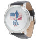 Uhr, Vintage Männeruhr mit schwarzem Lederarmband