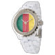 Eine wunderbare Damenuhr mit weißem Armband und grün-weiß-kariertem Ziffernblatt. Trägt sich ganz fabelhaft. Exzellenter Druck, sehr klare Farben. Schönes Design.
