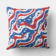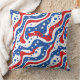 Dieses Kissen wird in einem patriotischen Mod mit roten, weißen und blauen Sternen gezeigt, perfekt für die Feierlichkeiten vom 4. Juli. Passen Sie dieses Objekt an oder kaufen Sie, wie es ist. Lizenzierte Printwerbung