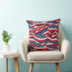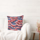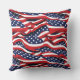 Dieses Kissen ist in einem patriotischen rot-weiß-blauen Fahnenprint zu sehen, perfekt für die Feierlichkeiten vom 4. Juli. Passen Sie dieses Objekt an oder kaufen Sie, wie es ist. Lizenzierte Printwerbung