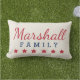 Das Lumbalkissen im patriotischen Zuhause-Akzent hat einen eigenen Familiennamen / Familiennamen in Rot, Marineblau und Weiß.