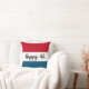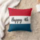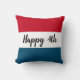 Lassen Sie sich von der patriotischen Dekoration mit dem patriotischen Rot-Weiß und Blau 4. Juli Throw Kissen abheben. Beide Seiten des Kissens haben breite horizontale rote, weiße und blaue Streifen und "Happy 4th" in trendy gebürsteter Schrift.