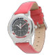 Uhr, Kinderuhr aus Edelstahl mit rosa Lederarmband