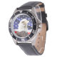Herrenuhr aus Edelstahl mit schwarzem Lederarmband