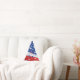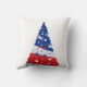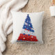 Ein cooles, Weihnachtsthrowkissen, mit einem roten, weißen und blauen, patriotischen Weihnachtsbaum, auf beiden Seiten vom Kissen.